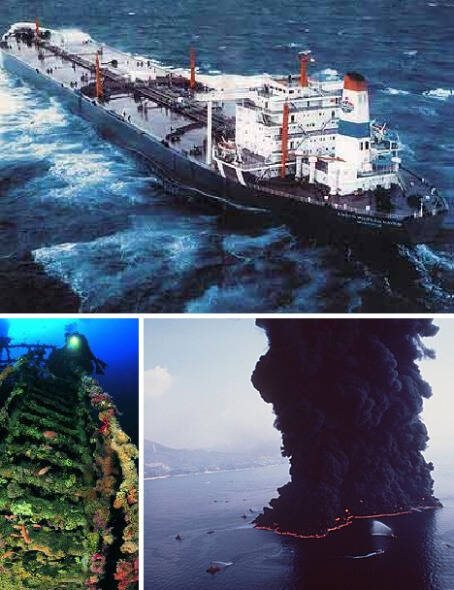 “大西洋女皇”号事故(原油泄漏量:28.7万吨)1979年7月19日,多巴哥岛附近的加勒比海水域遭受强热带风暴袭击。有两艘船被困在风暴中:满载原油的超级油轮“大西洋女皇”号(Atlantic Empress)和“爱琴海船长”号(Aegean Captain)。不幸的事情终于发生了,“大西洋女皇”号和“爱琴海船长”号发生碰撞导致大爆炸,结果发生了迄今历史上最严重的油轮漏油事故。