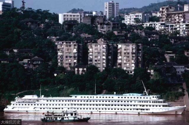 重庆嘉陵江上的巨大邮轮,看来90年代时重庆已经很富裕了。