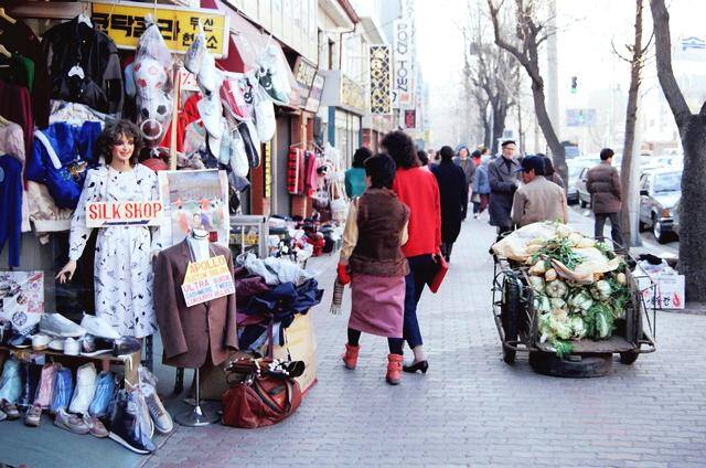 再看这张照片,看到那推板车卖菜的小贩,你只怕会说这不就是那个地方么?各位看官,你们千万不要搞错了。这不是中国,这里是韩国,这里是1985年的韩国首都汉城。当然,要不是看到商店招牌上写的韩文和那高贵的阴沟里洗,还真以为是中国的某地。