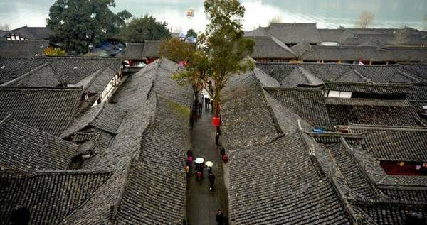 古城阆中的建筑风格体现了我国古代的居住风水观,棋盘式的古城格局,融南北风格于一体的建筑群,形成“半珠式”、“品”字型、“多”字型等风格迥异的建筑群体,是中国古代建城选址“天人合一”完备的典型范例。