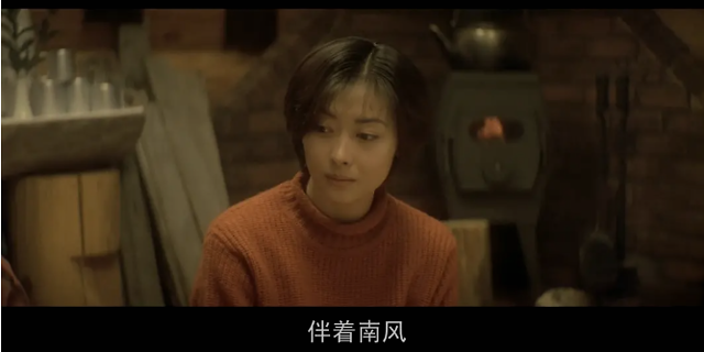 电影《情书》截图,字幕是《蓝色珊瑚礁》歌词