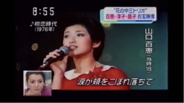 由于出道时只是中学三年级的年龄,樱田淳子加入的组合叫做“花样的中三生”。组合内的其他二人,一位是第一届 (1971) 的冠军森昌子,另一位就厉害了,是第五届 (1972) 亚军、在中国家喻户晓的时代记忆——山口百惠。